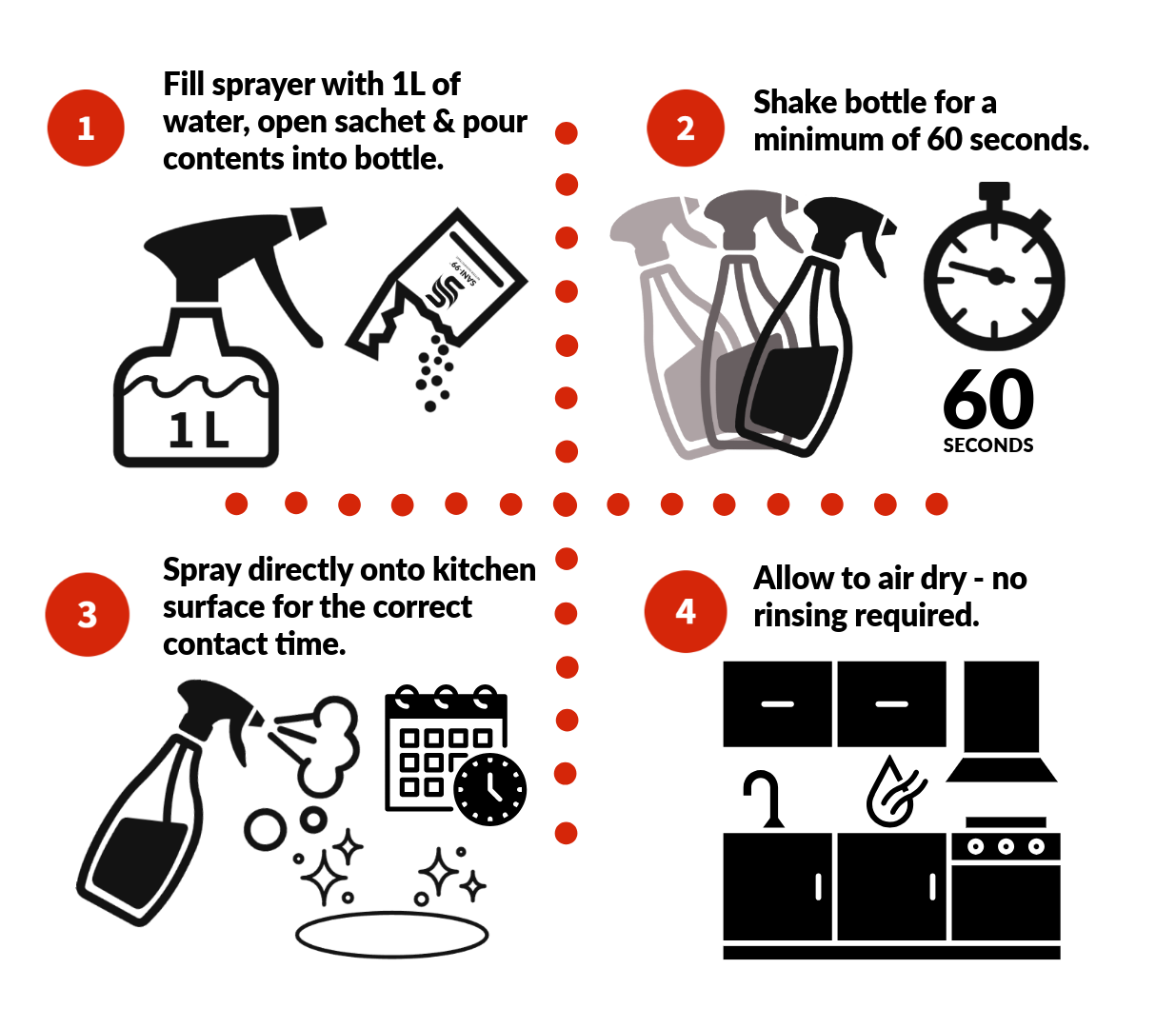 Designed for food-contact surfaces — spray and leave to air dry, no rinsing needed
